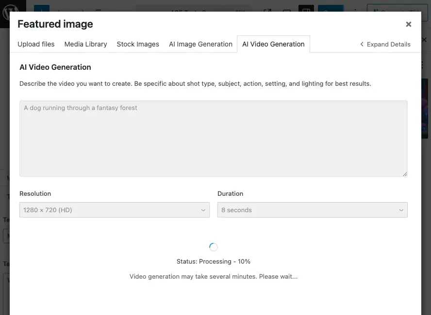 Once your video provider is configured, the AI Video tab is a powerful way to create custom video content, animations, and motion graphics without leaving the Media Library. Remember that video generation takes time, but the results can be worth the wait.